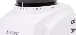 The Encore features a weighted base, 40 degrees of fineness, a second generation gearbox, efficient DC motor, and a combination of electric and gear speed reducers to slow the burr revolutions to 450 RPM keeping the grounds cool and avoiding static build up. The updated gearbox is designed to be robust, quiet, and safe, as the Encore will automatically trigger a thermal cut-off switch if foreign objects enter the burrs.
