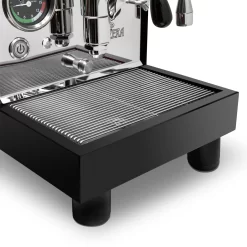 The Black version of the Bezzera Aria includes rosewood accented steam, hot water, and E61 lever knobs as well as rosewood handle portafilters.