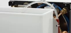 On the outside, the Magica PID flaunts elegant rosewood accents on the steam and hot water taps, E61 lever, and portafilters. The iconic E61 group with the Bezzera portafilters, steam and hot water joysticks, dual pressure gauges, and of course the iconic Biscione logo make for a timeless aesthetic. Not a small machine, the Magica PID’s wide drip tray provides ample space for cups, while the cup warmer itself has plenty of room for cappuccino/latte drinkware.