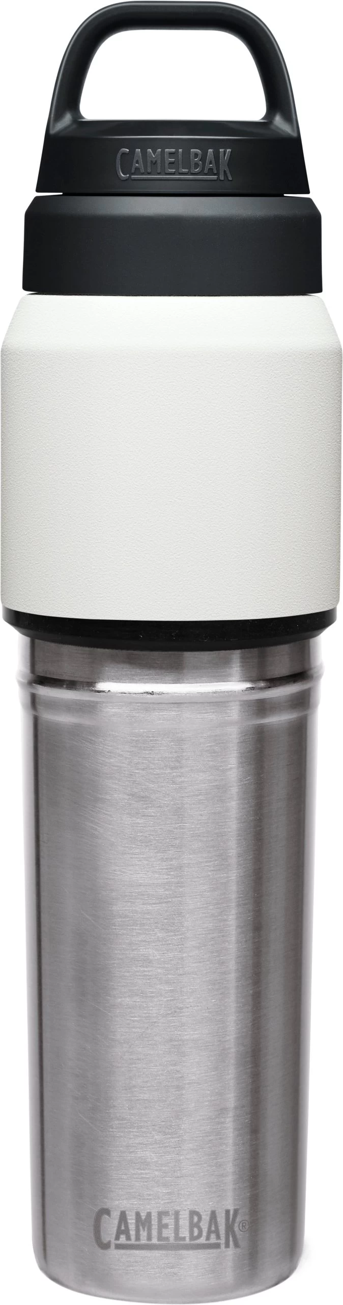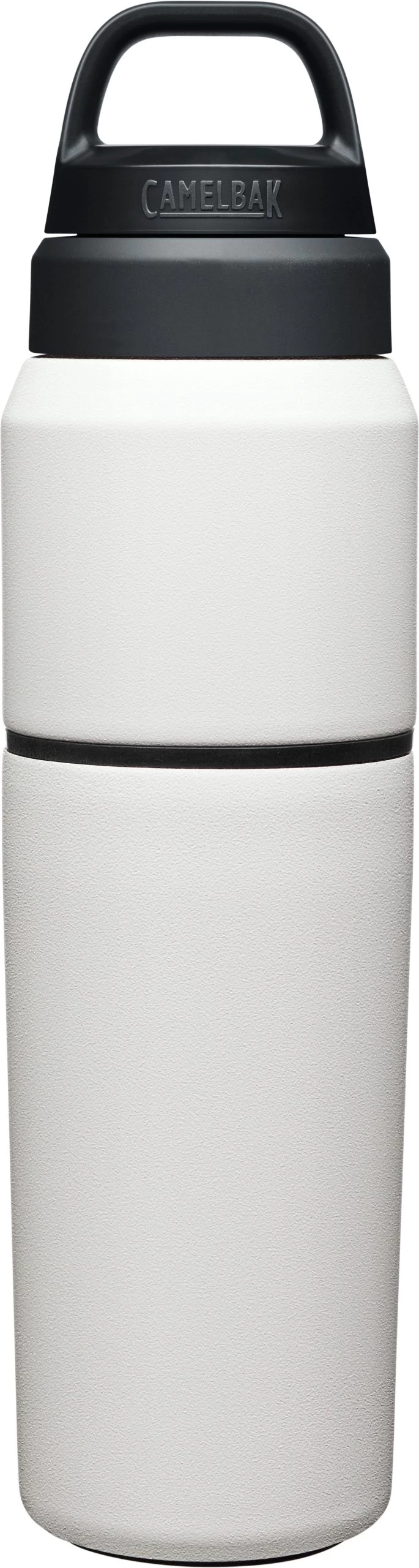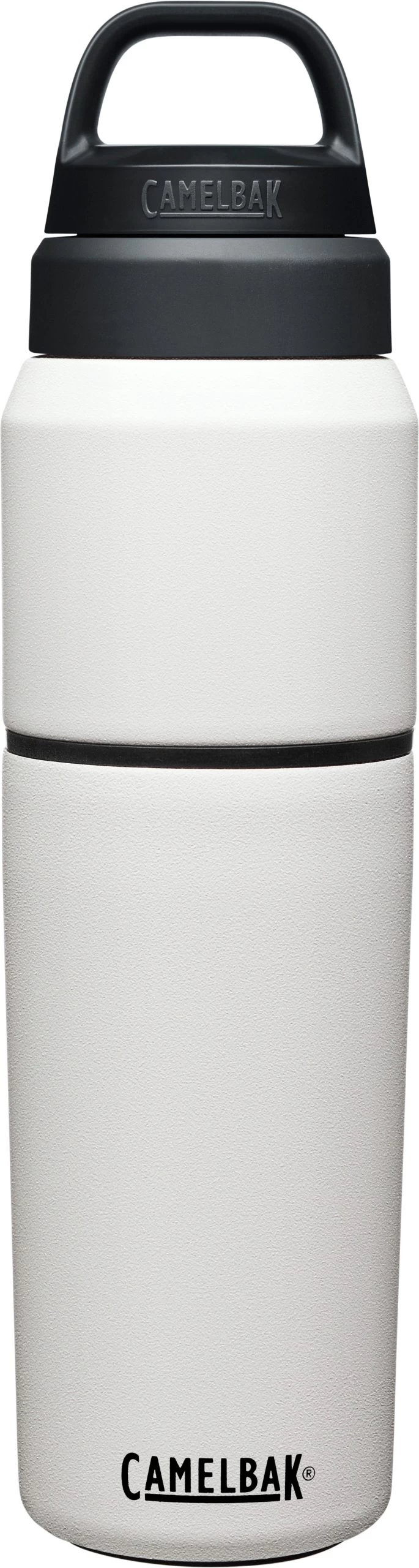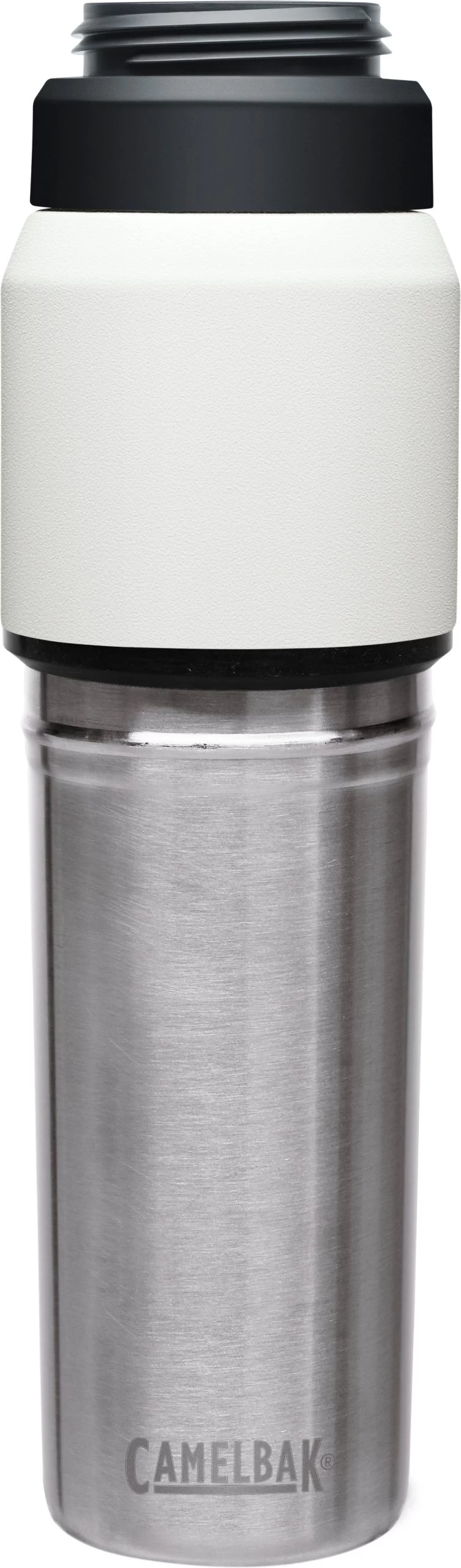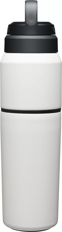 The Camelbak Multibev 22 oz/16 oz, is the ultimate beverage multitasker. Featuring a 22 oz water bottle with a detachable 16 oz travel cup, the Multibev is perfect for both solo and shared enjoyment of coffee and tea.Â