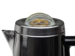 The Perk features an indicator light at its base that will alert you when your coffee is ready, and a glass lid that lets you keep an eye on the action. For added safety, the lid locks in place to keep it from opening while brewing. The automatic keep warm function will continue to heat the Perk for as long as it’s plugged in, and the power cord can be completely detached for easier serving.