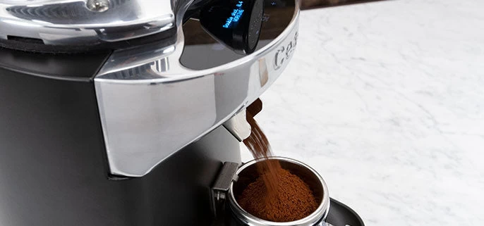 This brings us to the crowning feature on the E37S: it’s comprehensive controls. Not only can you program a single and double shot to dispense by time, within 1/10th of a second, the Ceado E37S features an “extra” button that can also be programmed to your liking. We usually use it for a triple shot, for those triple shot kind of mornings. Of course, you can always grind manually to top off your shot, or for a more hands on experience. Another great addition to the controls are three different modes of operation, so you can choose between selecting the dose on the screen, holding the button with your portafilter, or tapping it once or twice depending on the desired dose. Ceado has really thought of everything with the E37S.