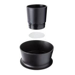 Termed a “no bypass” brewer by Ceado, Hoop’s two piece design consists of the lower Water Crown where brew water is introduced and the Filter Tower where a coffee filter and ground coffee are loaded. When brewing, water is poured into the Water Crown and is then evenly distributed across the grounds through 12 holes positioned around the circumference of the Filter Tower. Since the water is introduced to the coffee indirectly, it reduces the likelihood of channeling by preventing uneven or aggressive pouring from influencing water flow. AKA: No Bypass.