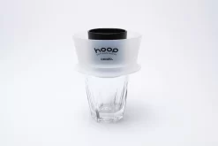 - Place Hoop on a cup or serving vessel and pre-wet the filter.
