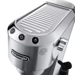 The DeLonghi Dedica Deluxe EC685 Espresso Machine is an ideal entry level espresso machine. thoughtfully designed to satisfy the needs and wants of less experienced baristas. At a mere 6″ wide, you’ll have no trouble finding a spot for the Dedica on your countertop, while the professional stainless steel exterior and chrome accents compliment the decor of the modern kitchen.