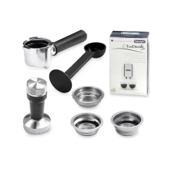 Compact and quick, the Dedica Arte brews and steams with a rapid-heating thermoblock boiler and houses a powerful 15 bar pump to extract espresso. The machine brews with a pressurized portafilter designed to simplify the espresso process, allowing for use of both pre-ground coffee and E.S.E. pods in addition to freshly ground espresso. Along with the portafilter, the Dedica Arte has a single and double shot filter basket to brew with your desired amount of coffee and a high quality steel tamper to prepare shots for extraction.