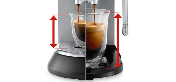 The Dedica Arte’s stylish design also thoughtfully considers practicality as well. Across the top of the machine, the cup tray can hold several espresso cups and passively pre-heat them before brewing. Depending on the size of your cup, the drip tray features a multi-tiered design that can comfortably fit cups up to 5.1” in height.