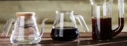Add a thermometer to the carafe while brewing your coffee to monitor and control the temperature for optimal tasting coffee. You’re sure to make a statement with this simple and modern pour over set.