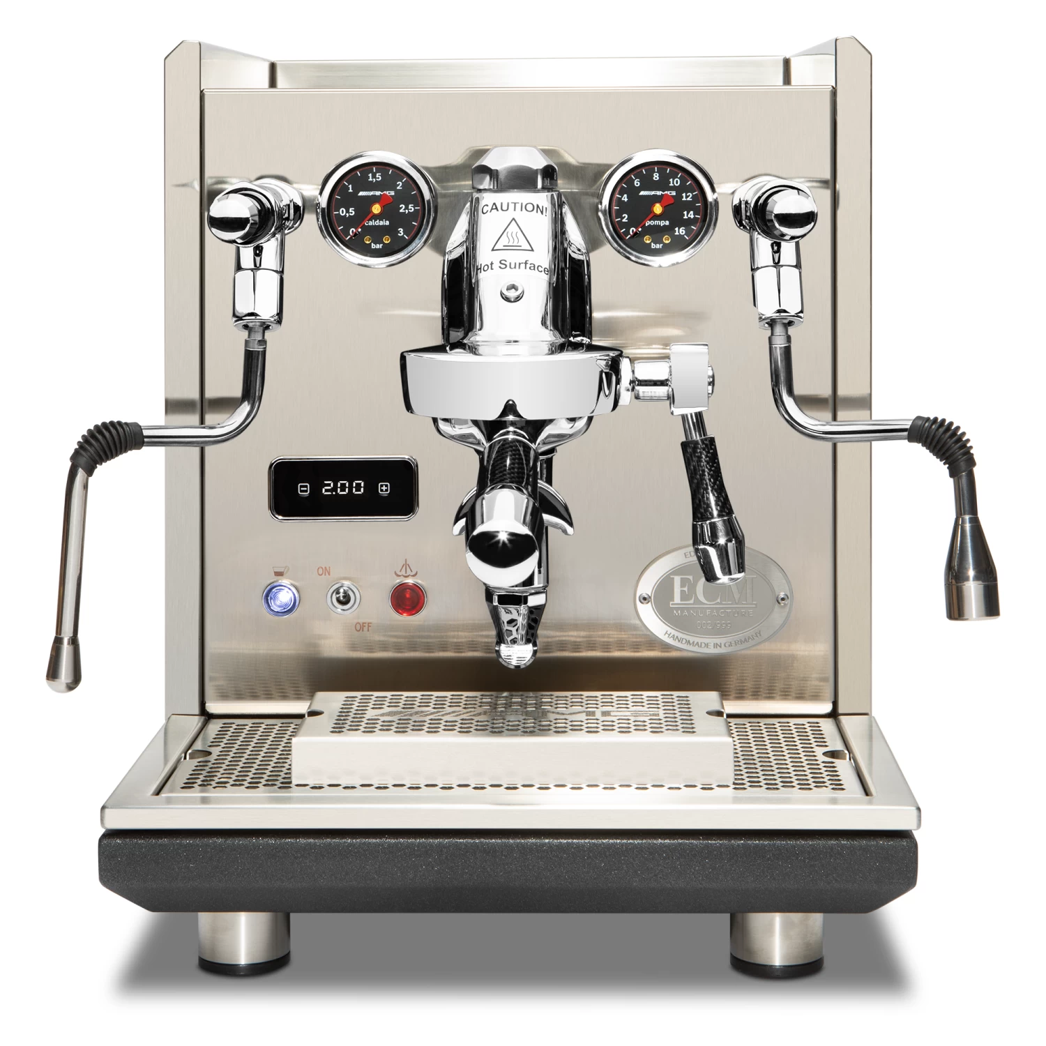 Less obvious advantages can be found in the iconic E61 brew group, which ECM has updated with stainless-steel internal components, as well as a single top cap for a cleaner aesthetic that other machines lack. These stainless-steel internals add much greater durability and resistance to calcium build-up for more straightforward maintenance, streamlining the experience of owning an espresso machine overall.