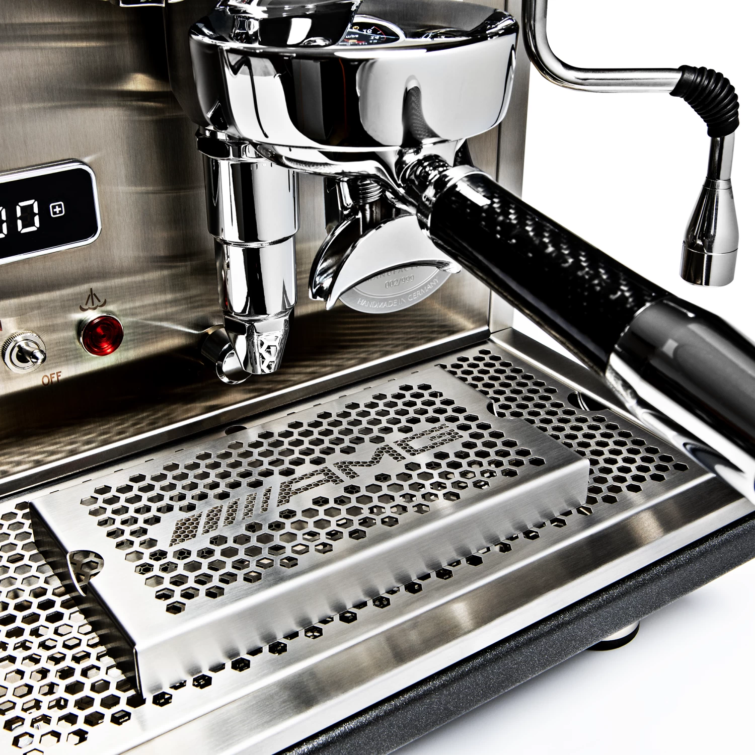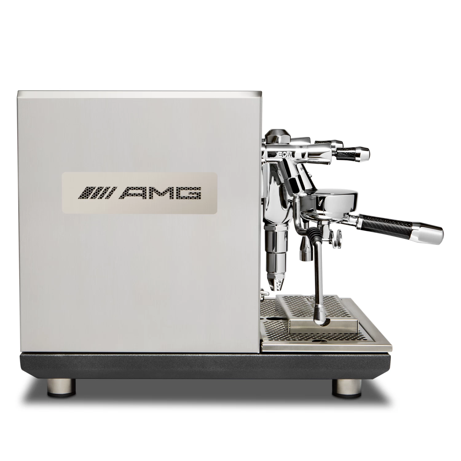 The ECM Synchronika is an industry best dual-boiler prosumer espresso machine with performance and flexibility that unlock the maximum potential of the home barista. This limited edition version pays tribute to the exquisite design of AMG automobiles with custom design elements and materials like the speedometer inspired pressure gauges and carbon fiber elements. This is your chance to own a piece of AMG and ECM history.