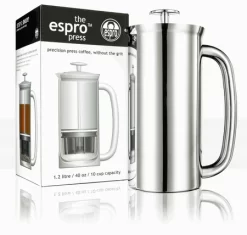 The dual filters allow for a staged filtration process. The first filter traps coarse grounds and the second filter features a finer mesh to prevent sediment from escaping and being poured into the cup. Unlike other most French presses, the Espro Coffee Press traps grounds at the bottom, before filtering out coffee particles, to produce a clean beverage, free of sediment. Along with its industry-leading filtration system, the Espro Coffee Press also features double-wall construction for maximum insulation. The Espro Coffee Press is highly recommended for coffee enthusiasts.