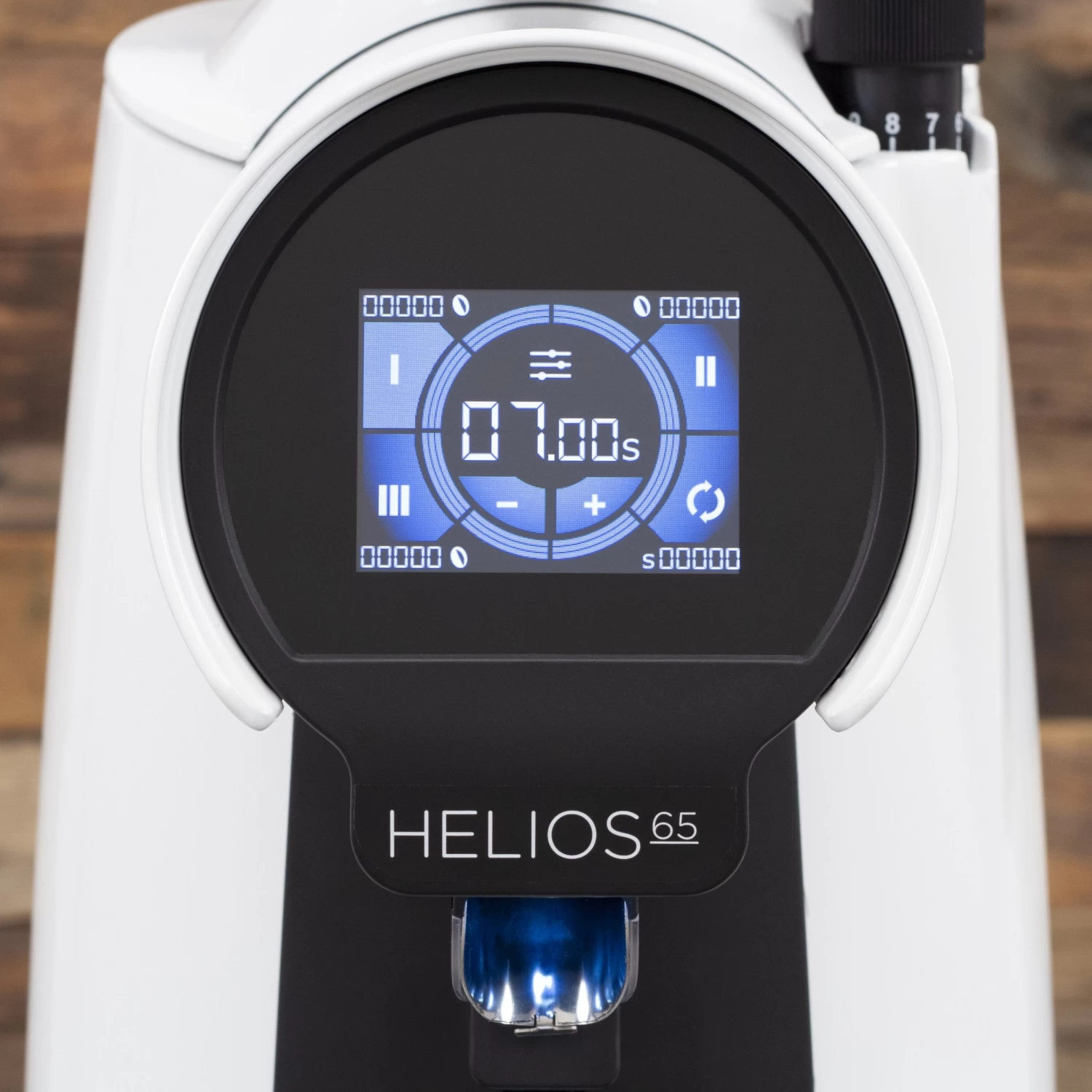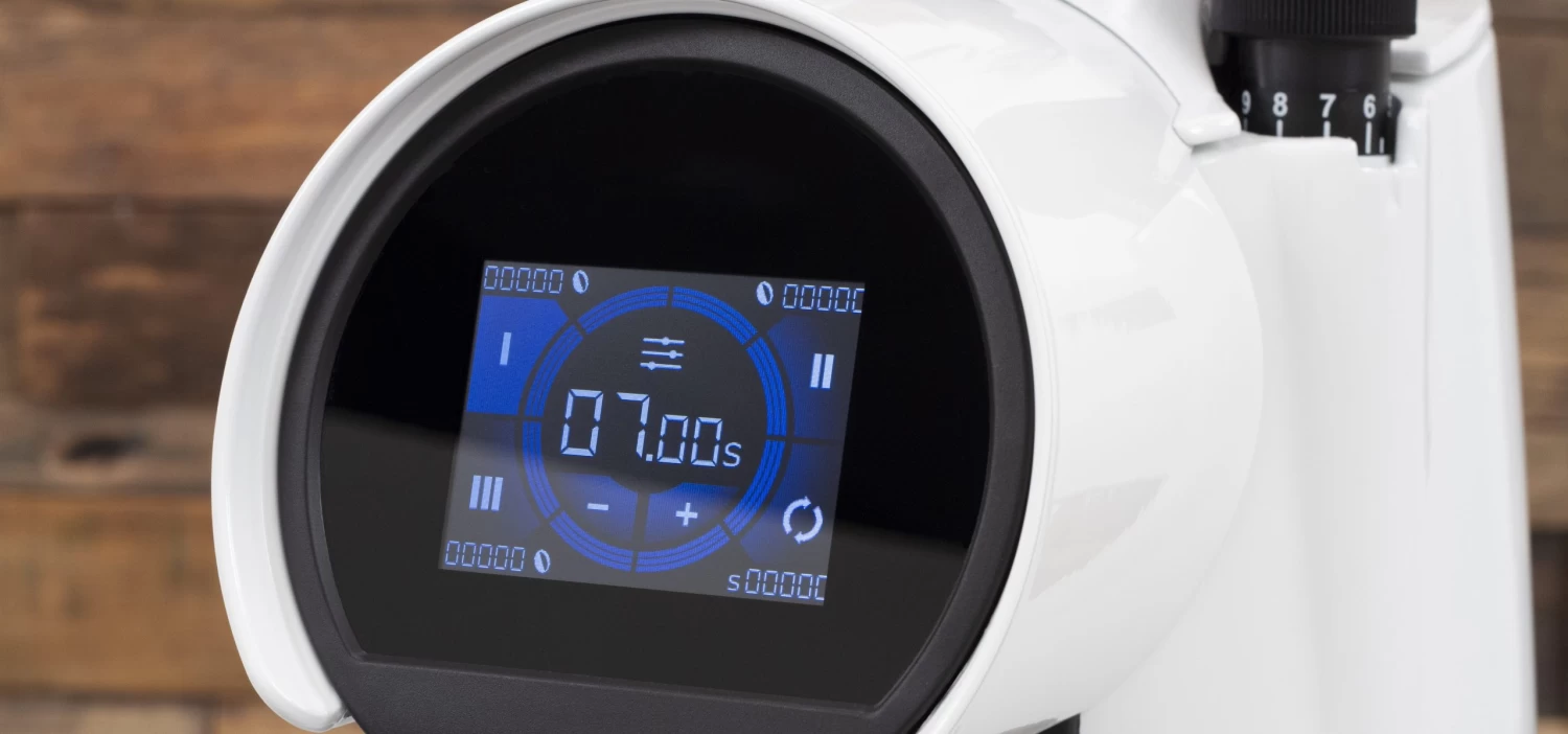 The vibrant touchscreen display makes a statement and offers 3 adjustable timed-grinding presets, as well as an option for manual grinding. Thanks to the touch controls, all adjustments and selections are easy to understand and come naturally. Inside the menus, you can tell the Helios 65 what type of burrs you have installed so that it can notify you when to change the burrs. You can select different colors for the menu as well for a personal touch.