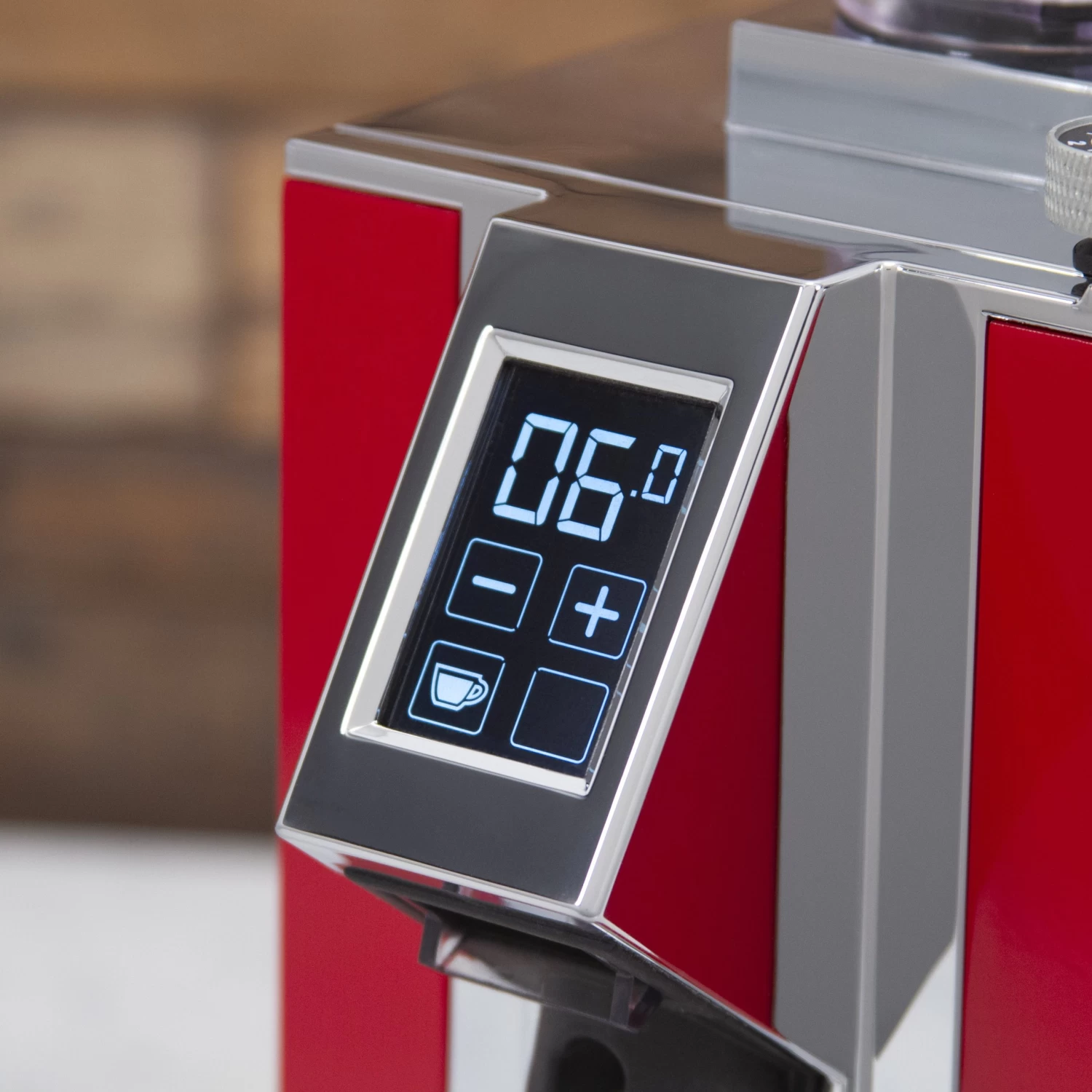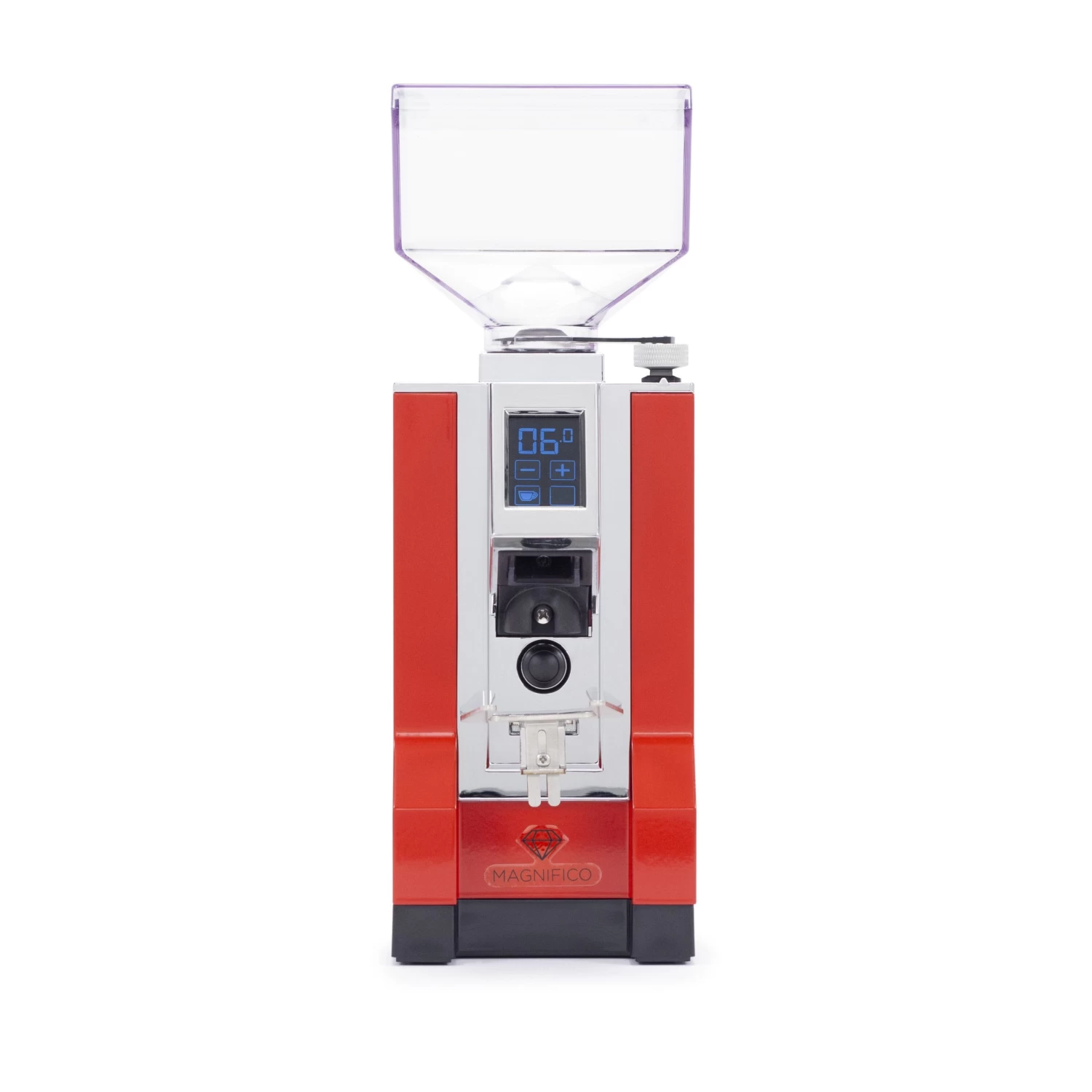 The Eureka Mignon Magnifico is an all purpose grinder with 55 mm flat hardened steel burrs that give it the highest output in Eureka’s Mignon range. Not only that, the Magnifico features specially designed “diamond inside” burrs which keep their edge for longer compared to stock burrs. The touch screen display is a stand out feature for a grinder so small, making adjustment as easy as it should be. With its larger burrs, the Mignon Magnifico can produce up to 1.8g of coffee per second for espresso, meaning it can produce a barista quality 18g double shot in as little as 10 seconds.