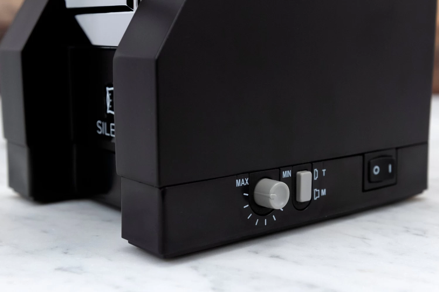 The micrometric adjustment knob on the Eureka Mignon Silenzio allows you to easily and precisely adjust the grind settings to make sure the consistency is right for whatever you’re brewing. You can also easily switch between the timed or manual control options with just the press of a button, letting you get the perfect dose every time.