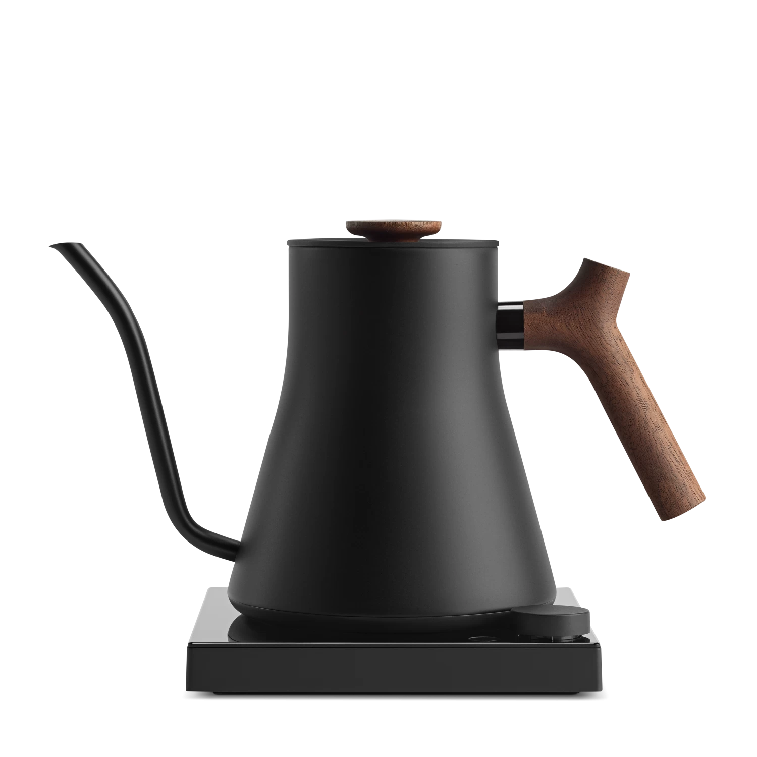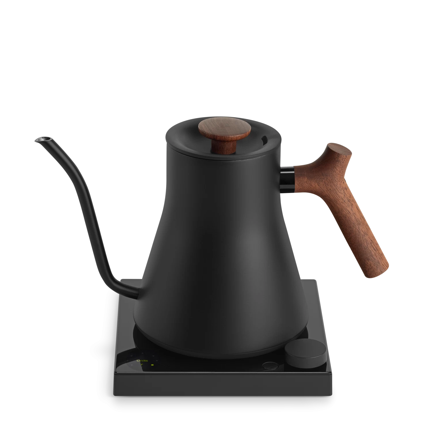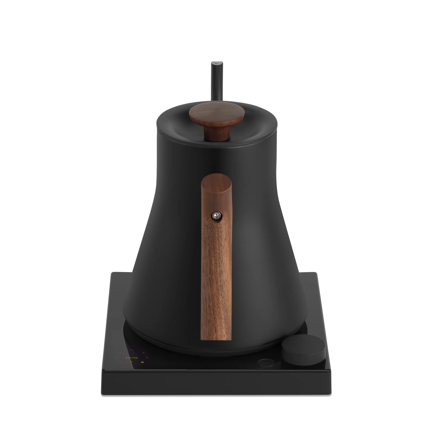 These exclusive design elements, combined with a matte black finish and elegant walnut accents, results in a kettle that will look great on any countertop. Customizable brew settings on a high resolution full color screen let you set the exact temperature you need for your brew while a 1-hour hold function ensures that the water stays at that exact temperature. The gooseneck spout and ergonomic counterbalanced handle help you pour with precision and control, making the Stagg EKG Pro Studio Edition great for pour-over coffee or tea brewing.
