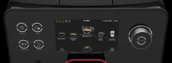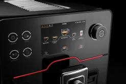 The Accademia has the rare distinction of being an Italian made and manufactured espresso machine complete with a metal frame and housing. Its full color 5-inch touch display is vivid, crisp, and highly responsive. Additional navigation is handled in the margins with a suite of four capacitive touch buttons on the left and a textured rotary knob and selector on the right. The entire front of the machine is backed with black glass and accented with the backlit Gaggia Milano red stripe. Cups can be stored on the programmable and electrically heated cup warmer that can be set with unique timers to turn on and off automatically throughout the day.