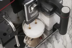 When brewing coffee beverages, each drink can be customized with a unique volume, strength setting (between 6.5 – 11.5g), a unique temperature (low, medium or high), your desired level of pre-infusion (no pre-infusion, short, medium or long), and ultimately the flow rate of the coffee using the Accademia-exclusive Espresso Plus System for regular, full-bodied or lighter cups of coffee. Beyond that, the Accademia includes the option to brew using pre-ground espresso via the bypass doser and many drinks can be doubled up via the “Two cups” function which grinds and brews a beverage twice in a row. Lastly, the Accademia serves as the debut for Gaggia’s Coffee Boost system, which initiates a second grinding cycle for your beverage while maintaining your desired volume.