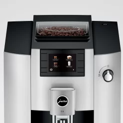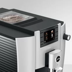 Additional updates to the E6 a streamlined full color display with flushed buttons, the utilization of JURA’s 8th generation brewing unit, 3D brewing technology, the addition of the extra shot for cappuccinos and the ability to brew with pre-ground via a bypass doser. The hot water spout has also been moved from behind the coffee spouts, the water tank is now grooved, the cup platform has a chrome finish, and most importantly the total number of one-touch specialties has increased.