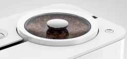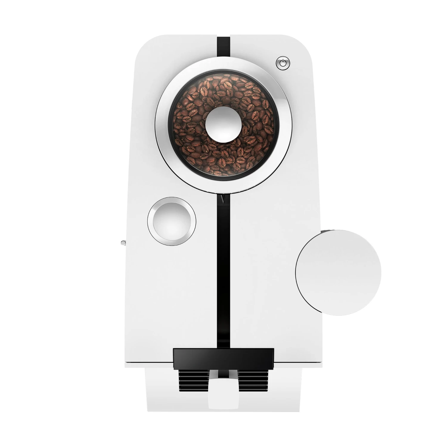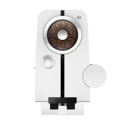 Available in either Full Metropolitan Black, this machine is unbelievably chic and minimalist. The entire front face is flat, except for the brew spouts and chrome-colored drip tray. Even the 37oz water tank is fashionable: a tall cylinder on the side of the machine with a diamond-like pattern. The machine’s hopper holds 4.4 ounces of coffee, while keeping the machine’s height just above a foot tall.