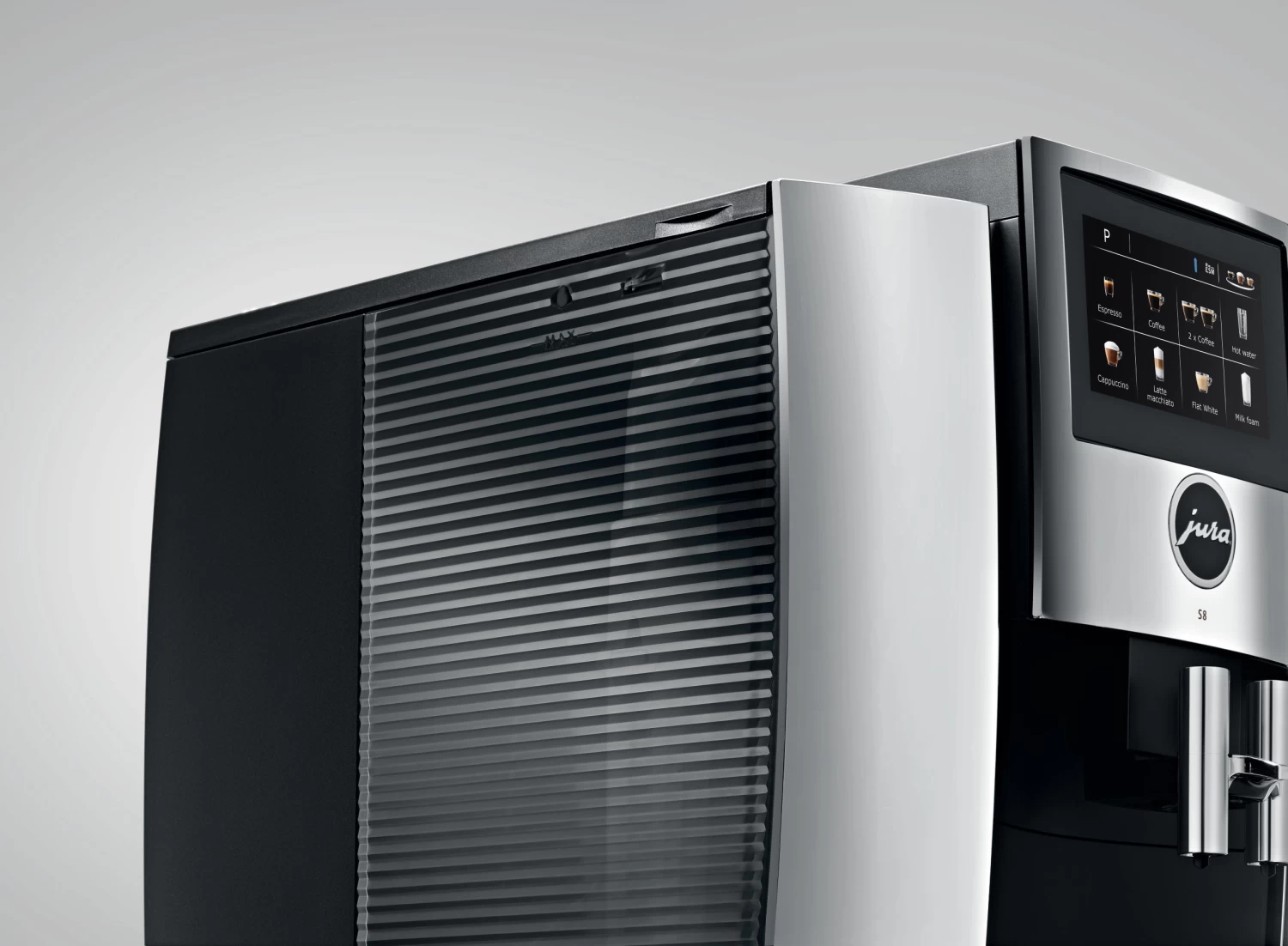 The JURA S8 super-automatic machine is the first of its class, combining the best qualities of JURA’s compact machines with the advantages of their more premium models, and reminding us of the wonders of Swiss design.