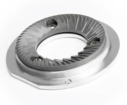 The Edison 65 SD has several unique features that are dedicated to improving the workflow of single-dose coffee preparation. In lieu of a traditional bean hopper, the Edison 65 SD ships with a 45g single-dose hopper with a vented shutter and a removable bellows attachment. The bellows fit between the hopper and its lid and can be used to push any remaining coffee out of the grinding chamber. Also included is an all-purpose fork that can hold the included 45g dosing cup and portafilters interchangeably.