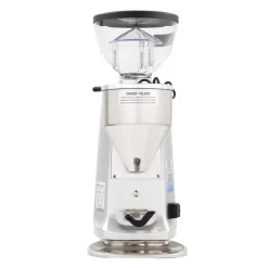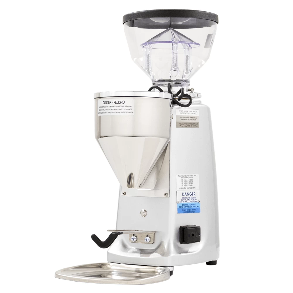 The Mazzer Mini Type A comes equipped with an electronic automatic dosing system, which allows you to program and dose single and double shots by time at the press of a button. You can also press and hold the manual grind button, lifting your finger once you’ve reached a desired amount. The Mazzer Mini Type A retains the high performance motor found in the standard Mini, as well as the short bean hopper, but that’s where the similarities end. The manual timer dial is replaced with electronic controls integrated atop the grounds dispenser, which funnels grounds evenly into the middle of your portafilter. The single and double shot buttons can be programmed by time to dispense automatically when pressed. We also appreciate Mazzer’s attention to detail in their design; for instance, the controls can be lifted from the top of the dispenser and handily clipped onto the side, and the portafilter can rest hands-free in the holder during grinding. The Type A is a serious upgrade to the Mini line, with its easy and intuitive operation, and our personal favorite among them.