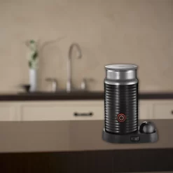 The Aero 3 has a stylish exterior available in your choice of red, black or white and is designed to be the perfect accent to the CitizZ as well as other Nespresso single-serve espresso machines. The lid is removable for easy cleaning and maintenance. This frother features a black base, easy-pour milk container, a frothing whisk and a steaming whisk. The Nespresso Aero 3 has a 6.7oz capacity.