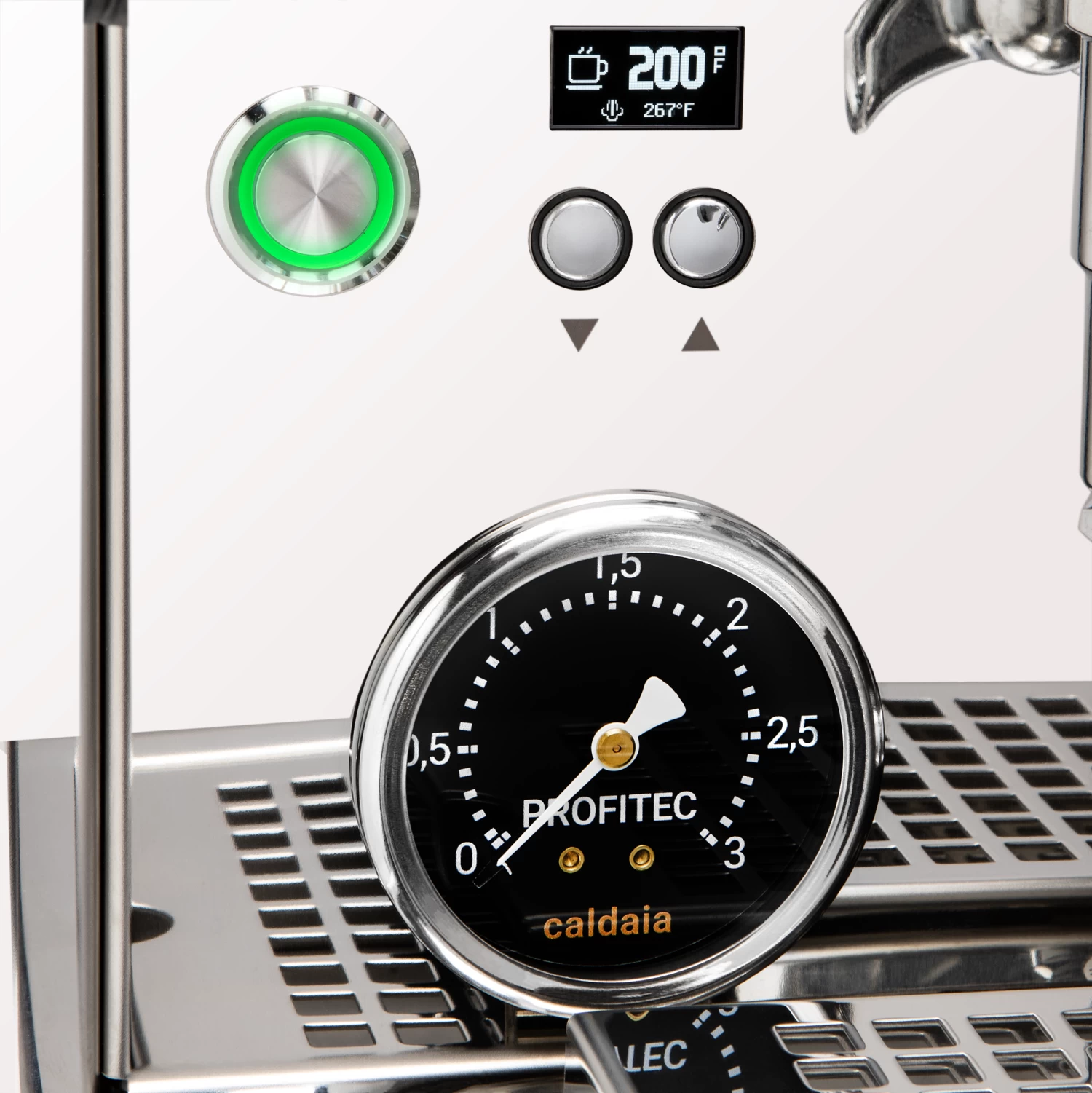 Power and precision are guaranteed on the Drive thanks to its dual boilers and dual PID control. Users can independently set the temperatures of the 0.75L brew boiler and the 2.0L steam boiler while the high capacity ensures excellent thermal stability and steam power. At the max steam temperature of 270F the Drive reaches an explosive 2 bar of steam pressure. For brewing the Drive is equipped with a whisper quiet rotary pump and comes stock with Profitec’s E61 flow control device for variable flow rate brewing between 2.5-28.5g/sec.