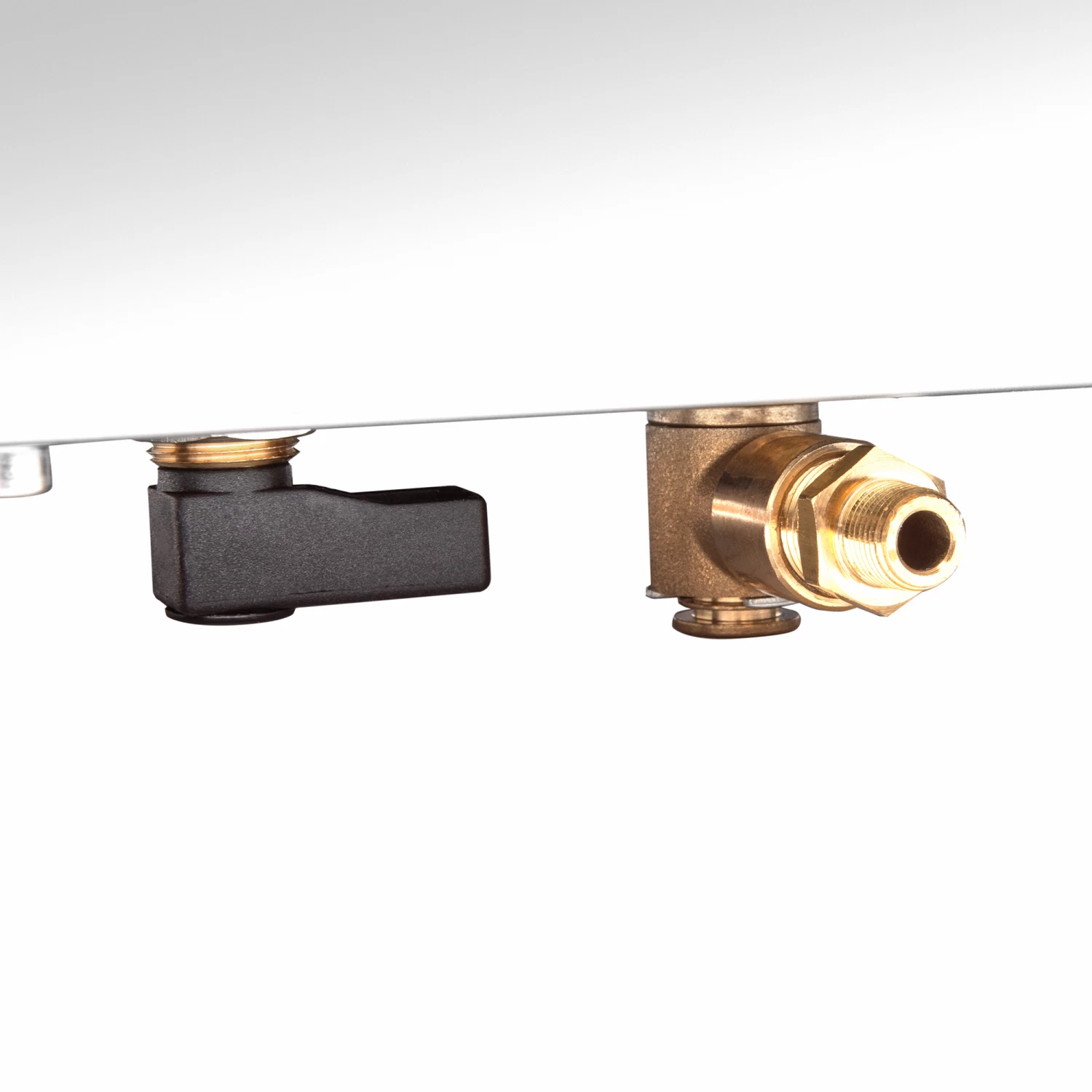 From the outside the Drive has inherited a number of design elements that have become staples within the Profitec lookbook. The updated quick steam valves and Twist and Change portafilter handles allow for simple customization with a wide variety of accents and materials. Ever present is the iconic “P” cutout on the drip tray along with black gauges for brew and steam pressure. In a nod to the Pro 400, the Drive echoes its black frame beneath the drip tray and cutout “Profitec” logo on the back panel.