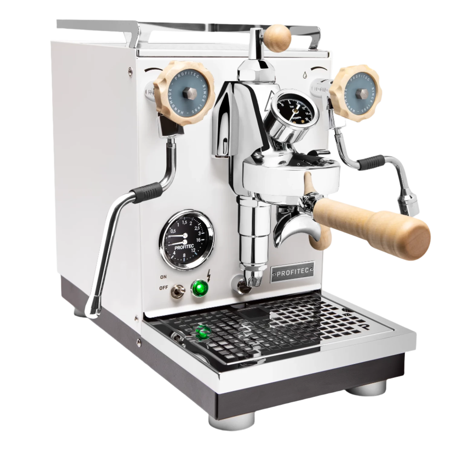 The Profitec Pro 400 With Flow Control is a small but mighty heat exchanger espresso machine that is perfect for kitchens of any size. As the most compact machine from Profitec’s lineup, you can save some space without sacrificing the features that you usually see on high-end espresso machines. From the bigger features like the E61 brew group down to the small details like interchangeable disclets with different colors to match your kitchen, Profitec has thought of it all in the design of the Pro 400.