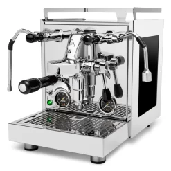 From the outside, the housing is constructed of polished stainless steel, and the side cutouts reveal a modern matte black panel. These panels in combination with the distinctively shaped steam and hot water arms make for a stand out addition to any counter top.