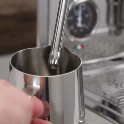 The Quick Mill Arnos With Flow Control features a 1.8 liter stainless steel boiler coupled with an LED PID temperature controller which doubles as a shot timer. Along with the ever-iconic E61 brew group, you can expect rocksteady temperature stability shot to shot. Plus, with the heat exchanger boiler, you can brew and steam at the same time. Brew and steam pressure are monitored by the colorful dual manometer. With the commercial style steam wand, you can froth and texture milk exactly how you like and prepare lattes and cappuccinos just like you would get at a local cafe.