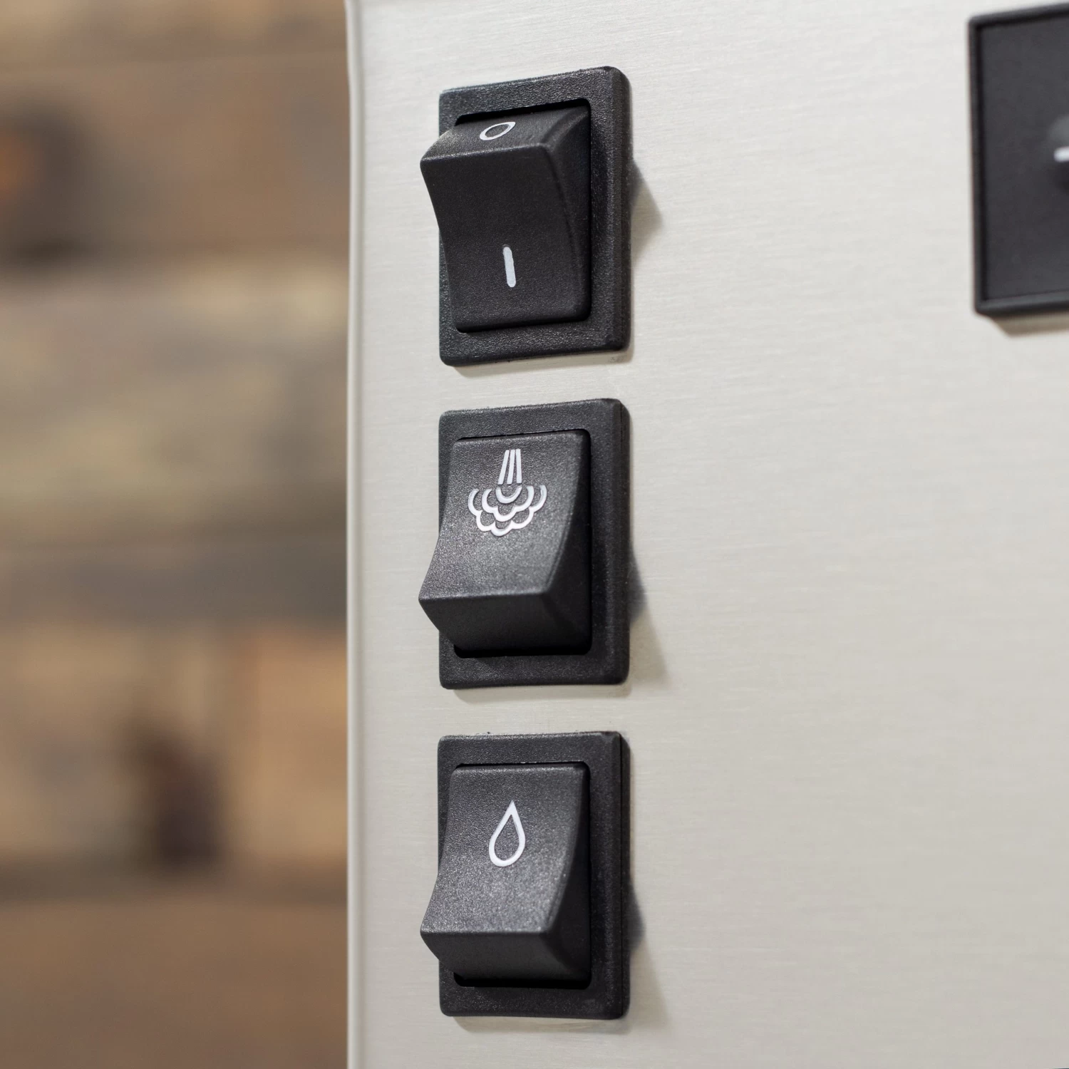 For instance, the dual boilers, a 0.3 L brew boiler and 1.0 L steam boiler, and dual PIDs allow users to steam milk and pull espresso shots at the same time. It also means each boiler can be set to independent temperatures, meaning you can customize the brew temperature for your coffee and change steam temperature to customize the pressure.