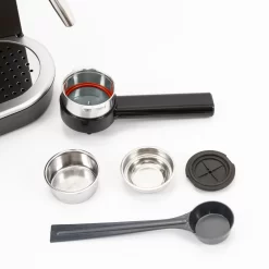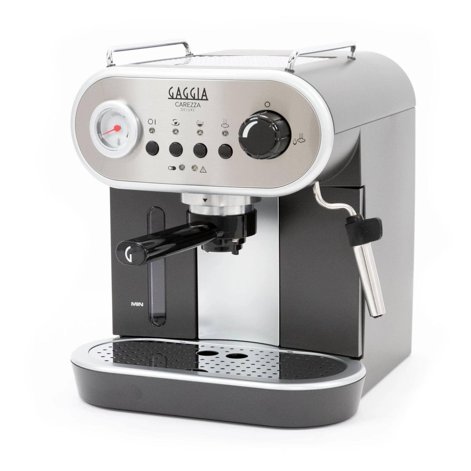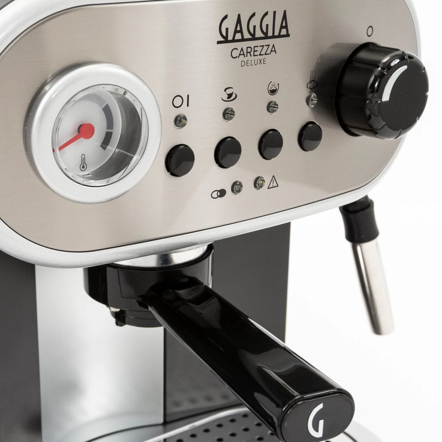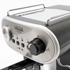 When we first saw the Gaggia Carezza, we forgot what year it was. The retro Italian styling is a blast from the past, belying what we’ve found to be substantial brewing power for its class. A built-in temperature gauge shows a real-time readout of the boiler, which heats up rapidly. In fact, the Carezza De LUXE is ready to brew in within moments of powering on; ideal for anyone on a tight schedule. We think this machine does a lot of things right. Its automated pre-infusion function evenly soaks your coffee to maintain temperature and aid in the extraction of your coffee’s flavor profile. The Carezza’s specially designed Crema Perfetta double-walled pressurized portafilter is specifically designed for use with ESE pods and ground coffee, eliminating the need for a grinder. Tamping isn’t necessary either, but our tests found that a light tamp can really improve your shots.Â