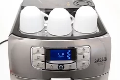 You’re at the helm with dedicated buttons for espresso, espresso lungo, cappuccino, and milk froth. Robust ceramic burrs grind beans fresh for every drink you prepare and 5 adjustable strength settings and Gaggia’s adapting system guarantee that the perfect amount of coffee is used every time. Should you prefer, there’s also the option to fill the brew group with pre-ground coffee thanks to the bypass doser. For specialty milk drinks, the auto frothing milk carafe can produce a cappuccino, baby cappuccino, or frothed milk at the touch of a button. The carafe can be stored in the refrigerator when not in use, and is dishwasher safe for easy cleaning.