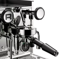 Modernized for both style and function the Rocket Appartamento TCA is a smart heat exchanger espresso machine that delivers several key updates while preserving the essential DNA that defines a Rocket Espresso machine. TCA stands for “Temperature Control Adjustment” and refers to the new system of regulation that uses a variable pressurestat controller to adjust pressure and temperature inside the boiler. From the outside the TCA’s housing is an evolution of the iconic look with more streamlined panels that wrap around the machine, a Rocket logo pennant on the back and an angular E61 brew group.