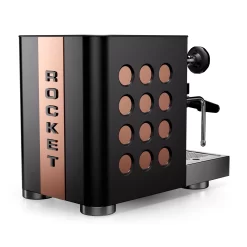 Modernized for both style and function the Rocket Appartamento TCA is a smart heat exchanger espresso machine that delivers several key updates while preserving the essential DNA that defines a Rocket Espresso machine. TCA stands for “Temperature Control Adjustment” and refers to the new system of regulation that uses a variable pressurestat controller to adjust pressure and temperature inside the boiler. From the outside the TCA’s housing is an evolution of the iconic look with more streamlined panels that wrap around the machine, a Rocket logo pennant on the back and an angular E61 brew group.