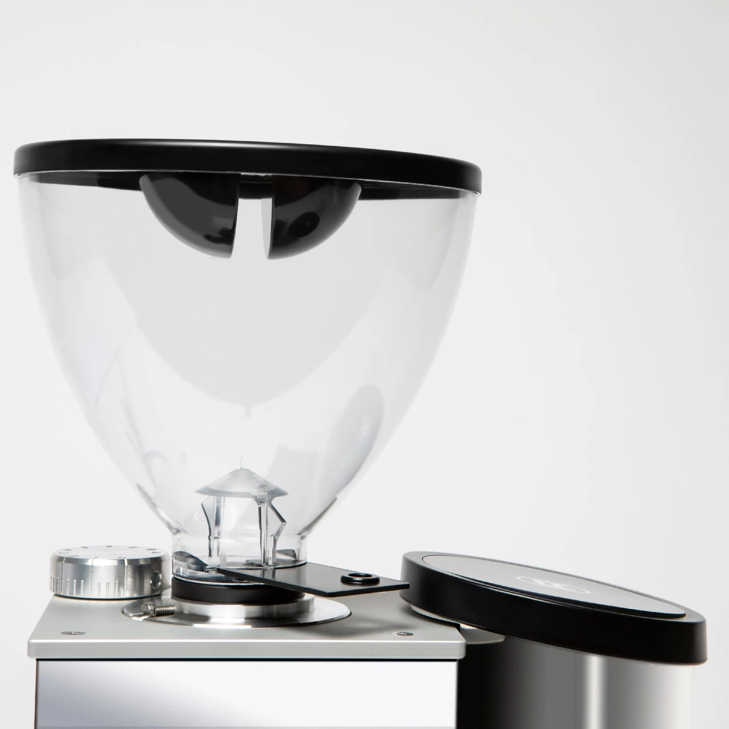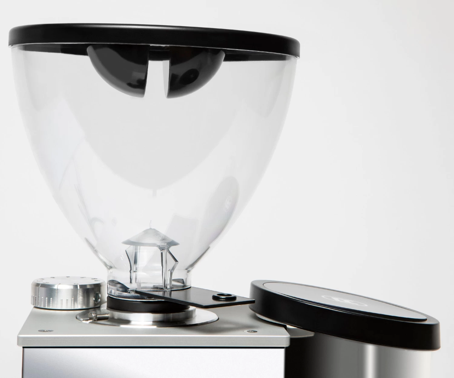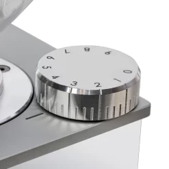 The star feature boasted by the Faustino is its stepless micrometric adjustments, giving it nearly unlimited grind settings to play with. The 50mm steel burrs can be adjusted with the micrometric adjustment knob near the hopper which moves only the bottom burr when adjusting the grind setting. In short, this means that you won’t have to readjust your grind setting after cleaning the burrs and grinding chamber, and it only takes removing three screws to take out the top burr for cleaning. The screwless design of the top burr means you’re getting an extremely smooth surface for grinding, which helps cut down on retention. Plus, the Rocket Espresso Faustino is equipped with anti-vibration technology that allows it to grind very quietly.