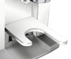 A small touchscreen display keeps everything neat and simple with the option to choose between a single dose, double dose, triple dose, or manual dosing. Visually, the display has a clean design and all UI elements are arranged for easy reading. For hands-free grinding, you can just leave the portafilter in the holder, press your desired amount, and watch the Faustino dispense fluffy grounds from the chute. You can easily adjust your grind settings for a single, double, or triple dose down to 1/10 of a second. Plus, the continuous grind button allows you to manually grind when you’re trying to find the right timing while dialing in or if you need to top off your grounds.