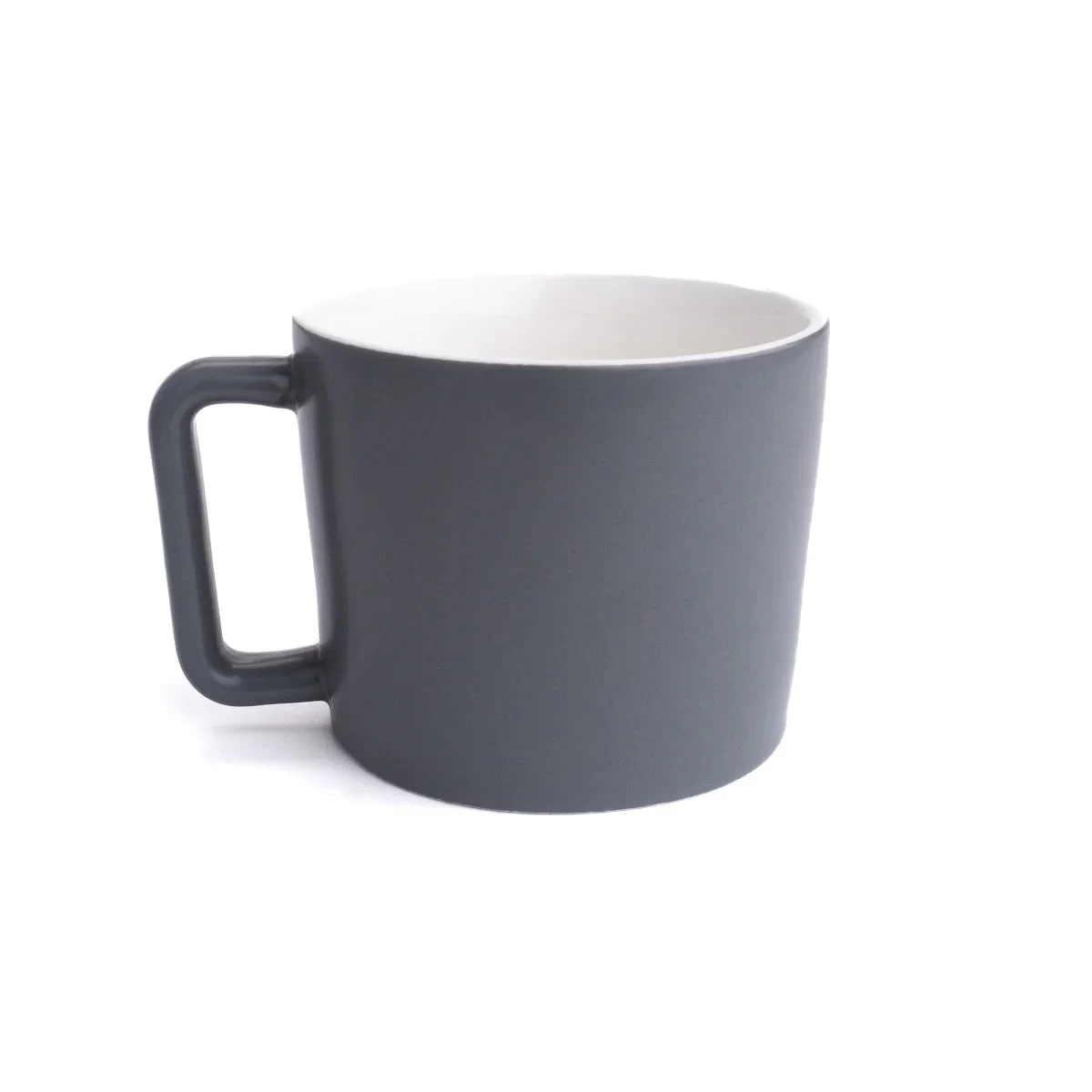 This dark, cool grey contrasts perfectly with the white interior of the mug, making for a drinking vessel that is somehow both deep and bright at the same time.